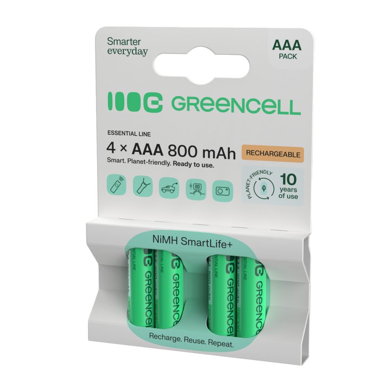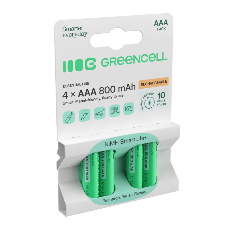 Varje år används mer än 40 miljarder engångsbatterier världen över, och de hamnar ofta direkt i miljön. De uppladdningsbara batterierna från Green Cell garanterar upp till tre års intensiv användning, vilket motsvarar användningen av många traditionella AAA-batterier! Med Green Cell-batterier kan du avsevärt minska ditt avfall och bidra till att skydda miljön!