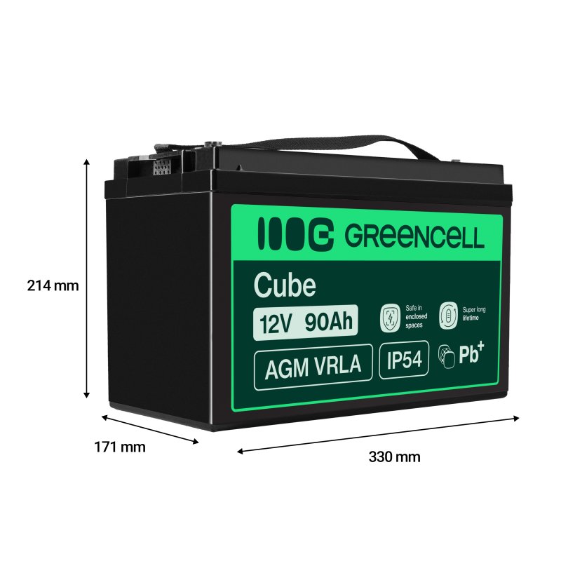 Green Cell ® AGM 12V 90Ah batteri VRLA blybatteri Unbemann Caravan fotovoltaisk rullstol solbatteri